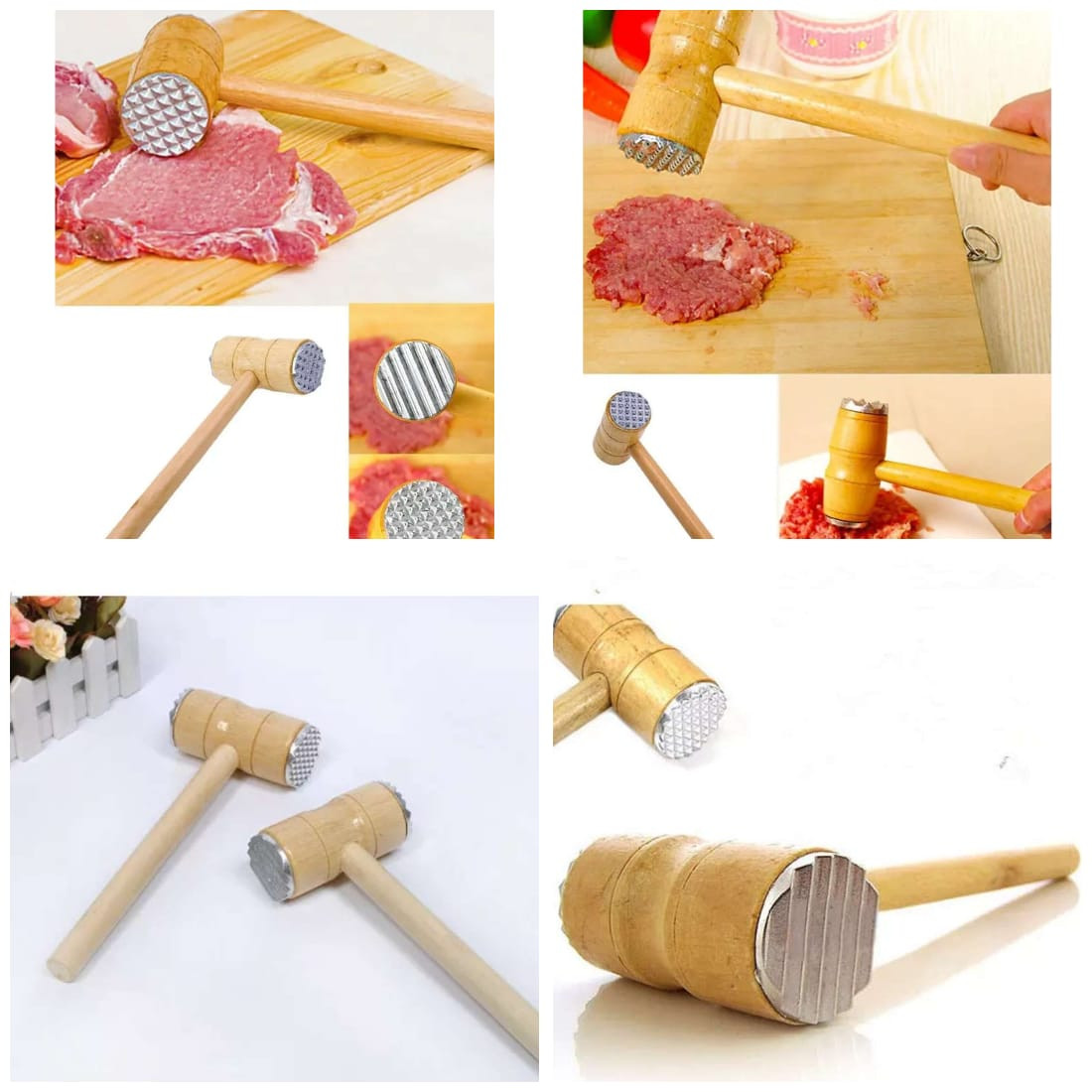 Wooden Handle Meat Hammer Double-sided Heavy-Duty Meat Tenderizer Mallet,Softening Chicken Beef