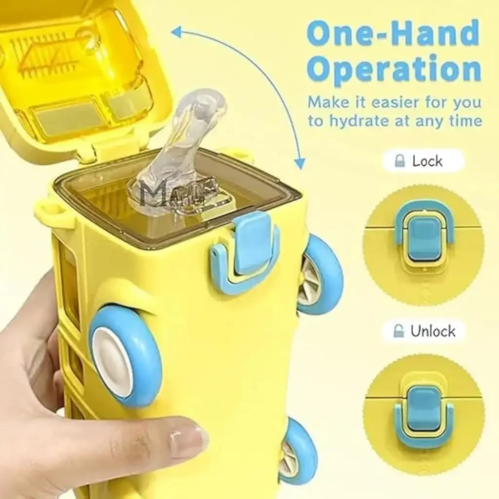 Bus Car Water Bottle with Wheels Leak Proof Lid, Mum Pot for School or Outdoor Fun – 500 ml