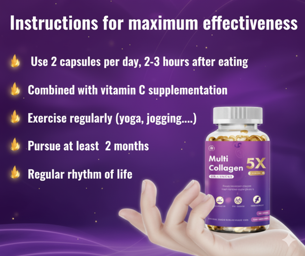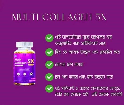 ✅ এই ক্যাপসুলে ৫ ধরনের collagen আছে তাই অন্যান্য collagen এর তূলনায় Multi-Collagen 5x বেশি effective ভাবে কাজ করে।