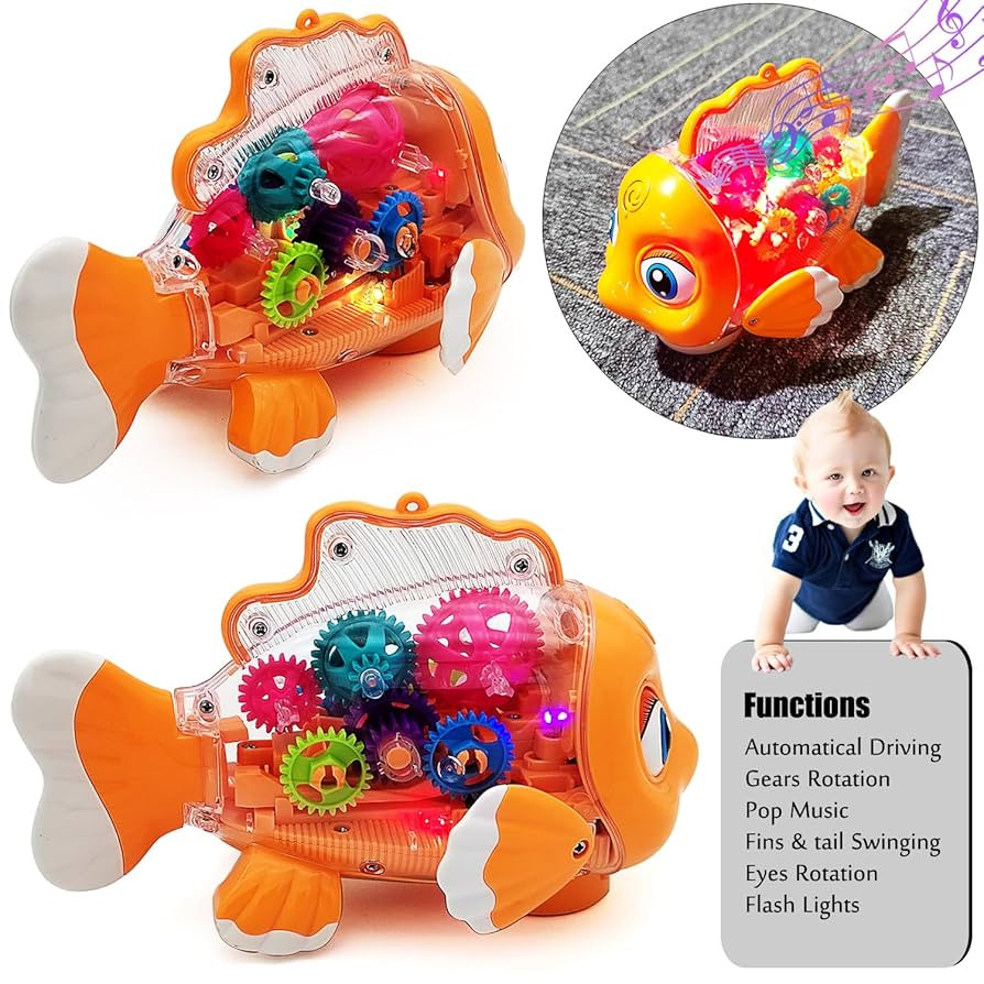 Transparent Gear Fish Toy, Baby Lights Music Light Fish Toy, Newborn Musical Early Educational Toy, Ideal Fish Toy for Floor Play